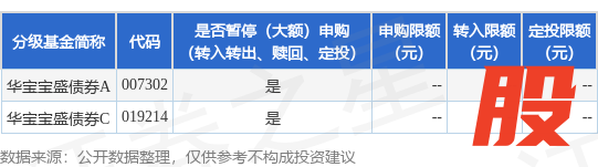 本站消息小散配资,6月18日华宝基金管理有限公司发布《华宝宝盛纯债债券型证券投资基金暂停大额申购(含定投及转换转入)业务的公告》。公告中提示,为保护基金份额持有人利益,自2025年6月19日起华宝宝盛纯债债券型证券投资基金暂停大额申购(含定投及转换转入)业务,申购、转换转入上限金额为1000.0万元,下属分级基金调整明细如下:
